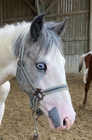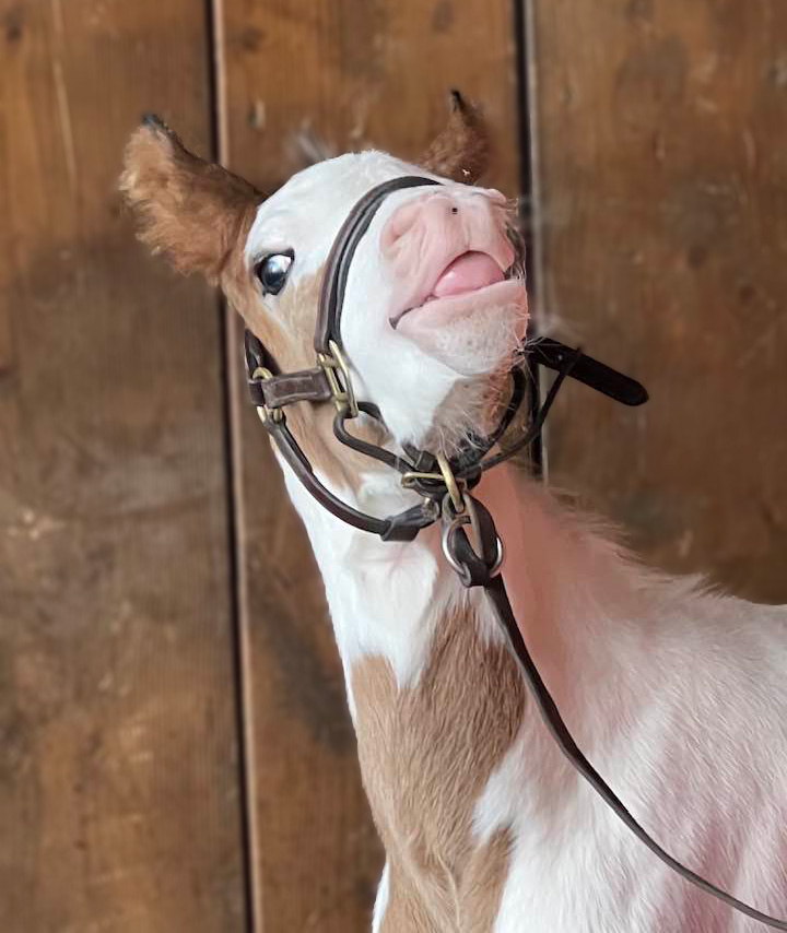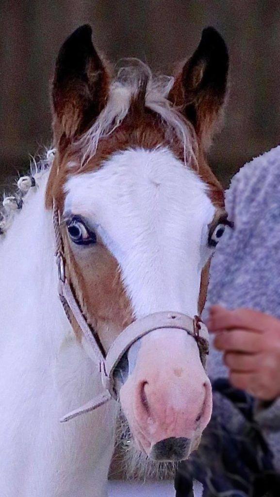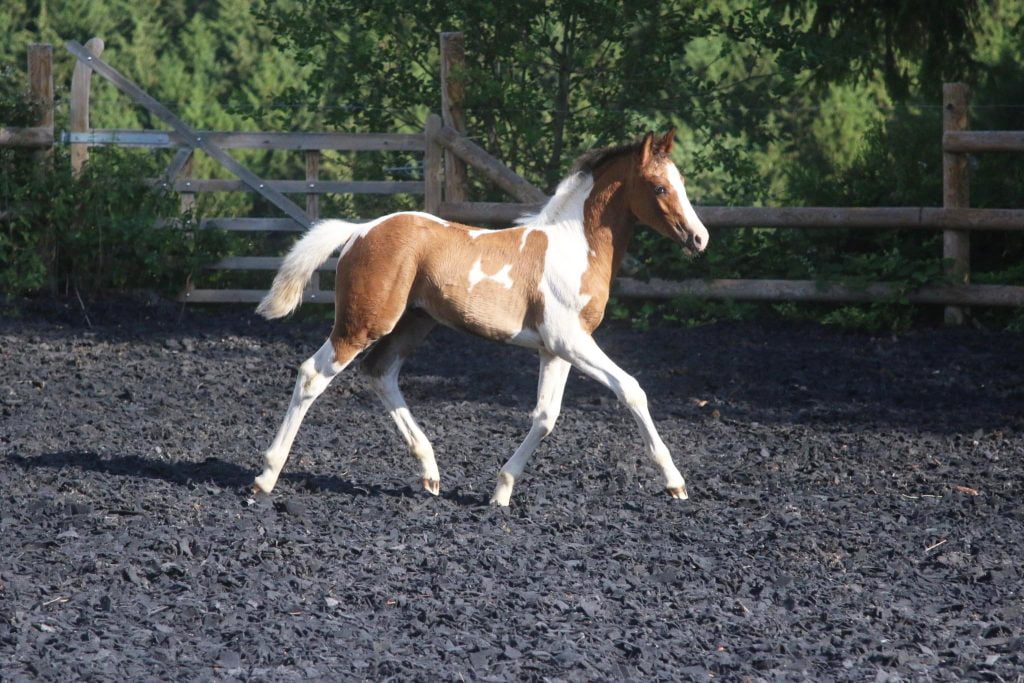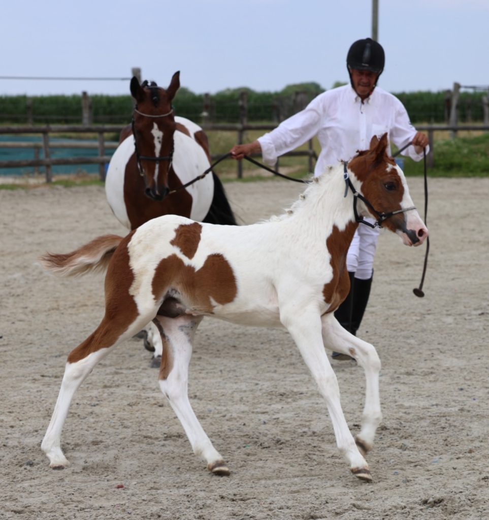 - Robe : pie baie hétérozygote + splash :