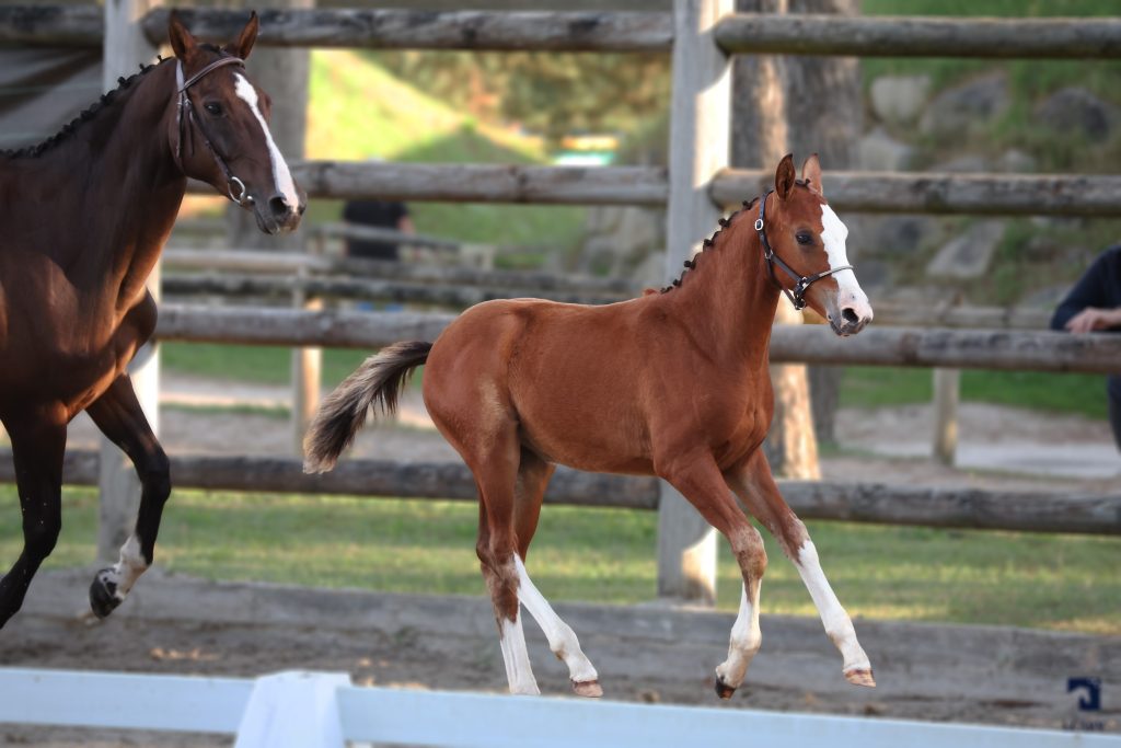 Les poulains de Jogry sont très marqués par leur père. Ce sont des poulains chics qui bougent bien avec de belles allures, curieux et d’un caractère facile.